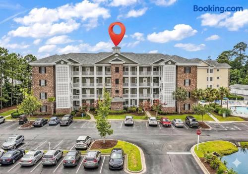 Enjoy a relaxing stay at this spacious lakeview condo located in the quiet Magnolia Pointe community. Situated on the third floor with elevator access, this well-appointed home offers peaceful views, a large private balcony, and direct access to the pool right beside the building—perfect for unwinding without the crowds. You’ll be minutes from Myrtle Beach’s top attractions, golf courses, dining, shopping, and entertainment, while still enjoying a calm, residential setting. 🛏️ Sleeping Arrangements • Master Bedroom: 1 King bed + 1 Twin bed, HDTV, en-suite bath • Second Bedroom: 2 Double beds + en-suite bath • 2 Full Bathrooms ⭐ Condo Features & Amenities • Full kitchen, fully equipped • Spacious living area with lake views • Large private balcony • HDTV in living room & master bedroom • High-speed Wi-Fi • In-unit washer & dryer • Dining table with seating for 8 • Elevator access (third floor) • Free parking directly in front of the building • Pool access steps from the unit 📍 Nearby Highlights • Myrtlewood Golf Club • Broadway at the Beach • Myrtle Beach Boardwalk, beaches, dining, and entertainment