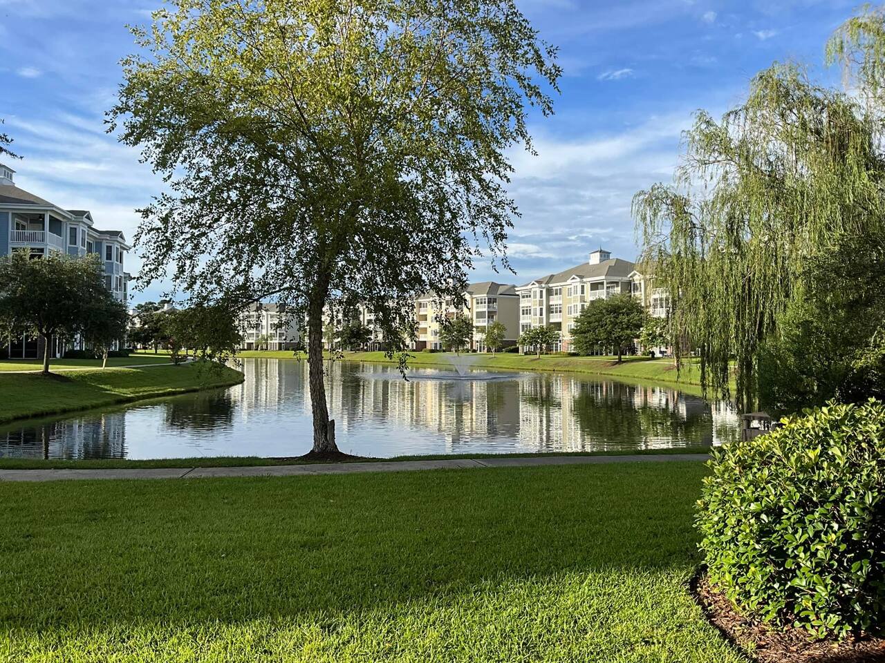 Enjoy a relaxing stay in this ground-floor 2BR/2BA lake-view condo located in the Magnolia Pointe community. With the pool and BBQ grills right beside the building, this home is perfect for families, golfers, and small groups looking for comfort and convenience. Centrally located near the beach, golf courses, shopping, and top attractions like Broadway at the Beach—everything Myrtle Beach has to offer is just minutes away. 🛏 Sleeping Arrangements • Master Bedroom: 1 King bed + 1 Twin bed • Second Bedroom: 2 Double beds ⭐ Condo Highlights & Amenities • Ground-floor unit with peaceful lake view • 2 full bathrooms • In-unit washer & dryer • HDTVs in living room & master bedroom • Free high-speed Wi-Fi • Dining table with seating for 6 • Access to 7 outdoor pools & multiple BBQ areas • Free parking directly in front of the building • 24/7 on-site security
