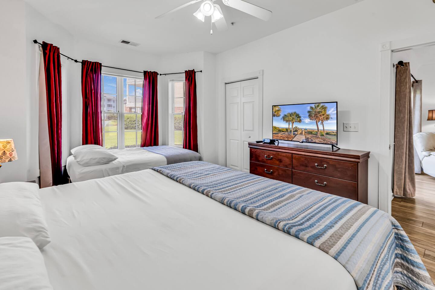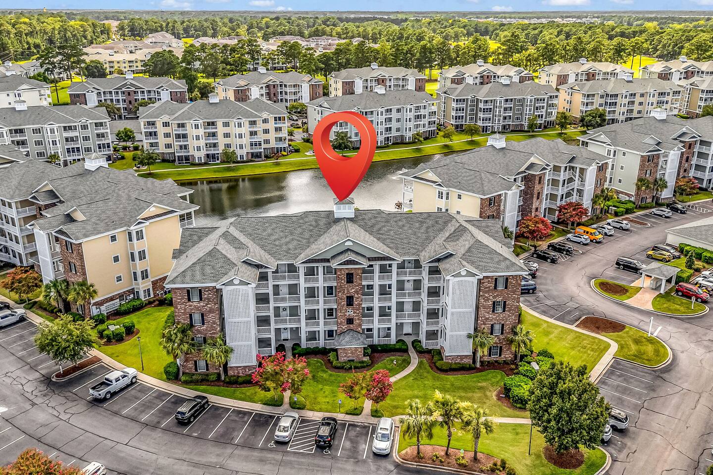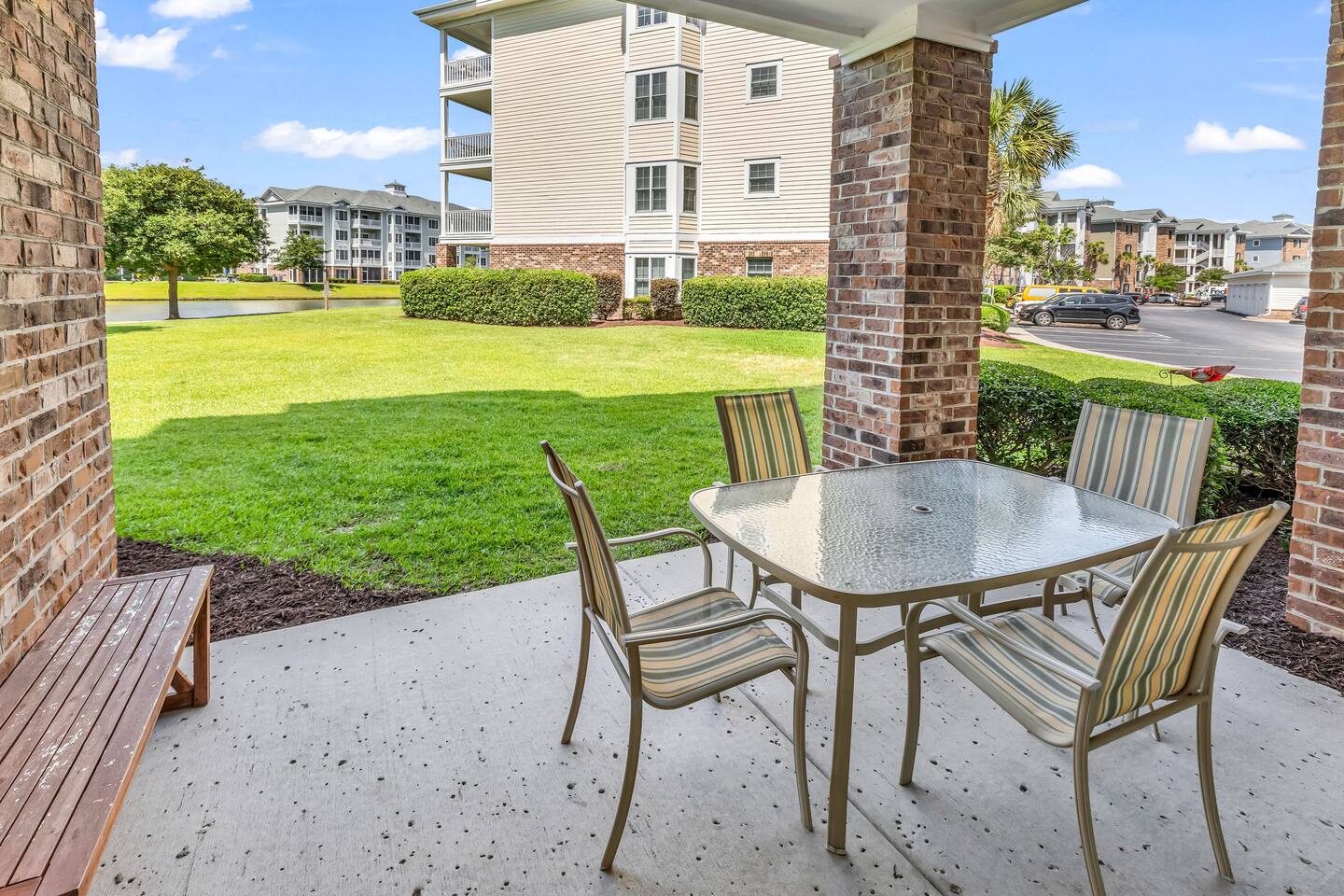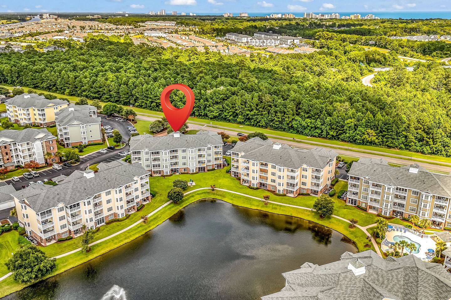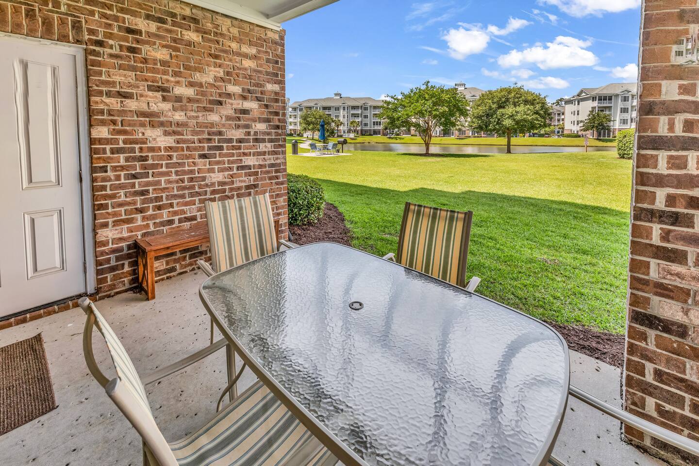 You will have access to the entire villa – a ground-floor condo with a lake view & BBQ grill in the backyard. The master bedroom features one king-size bed, one double bed, a private en-suite bathroom, and access to a walk-in closet. The second bedroom offers 2 double beds, along with a private full bathroom that includes a washer and dryer. Enjoy a fully equipped kitchen and a comfortable dining room. Free parking is available for one or two cars directly in front of the building. Plus, you're just moments away from all of the area's hottest attractions - including Broadway at the Beach, Tanger Outlet, Myrtle Waves Water Carl Ripken Field, Convention Center and miniature golf.